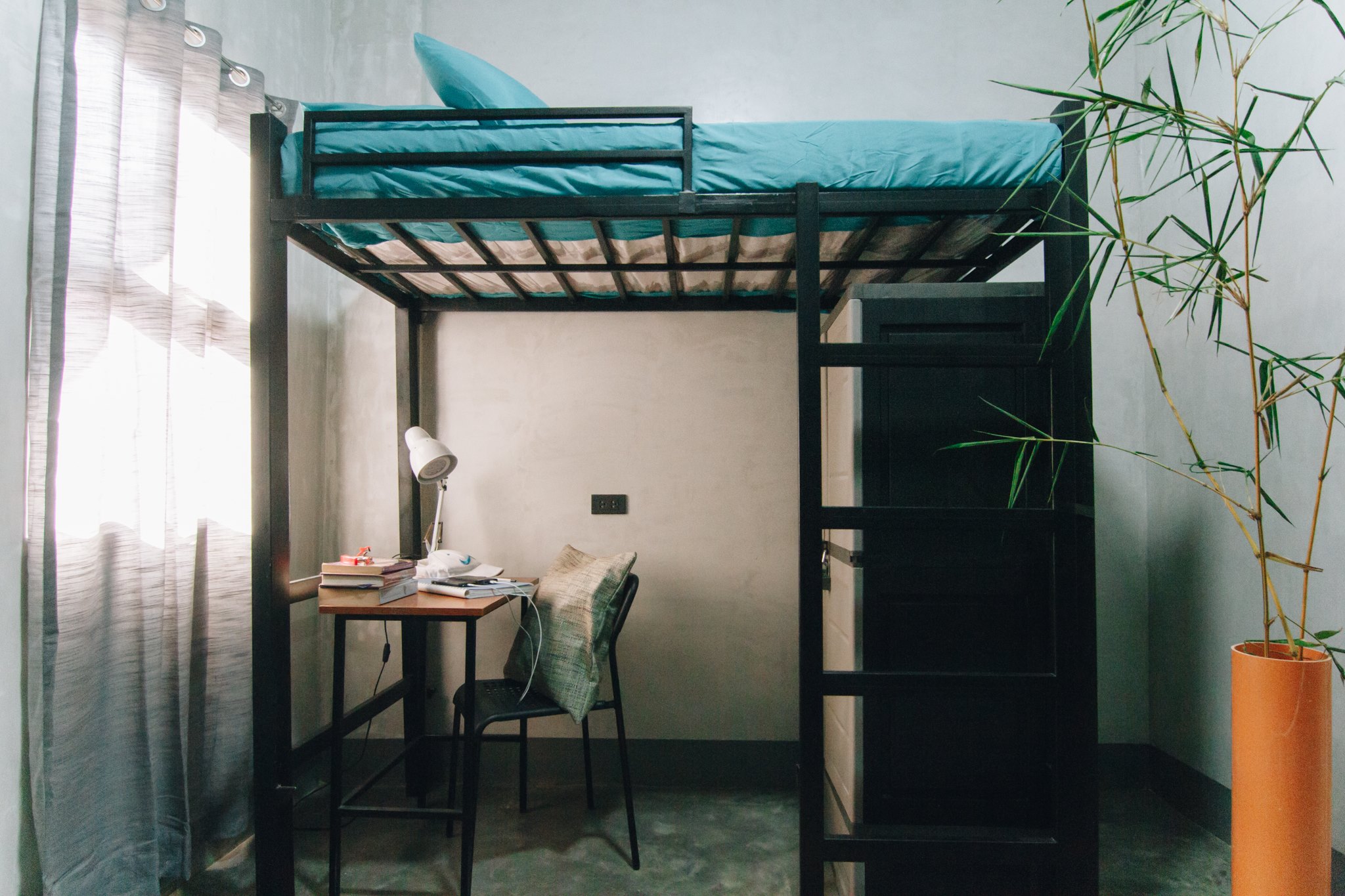 ROOM SPECS: -17 square meters -Loft-type bed INCLUSIONS: -Aircon -Table & chair -Clothes cabinet -Toilet, bath & sink -Fire Sprinkler System